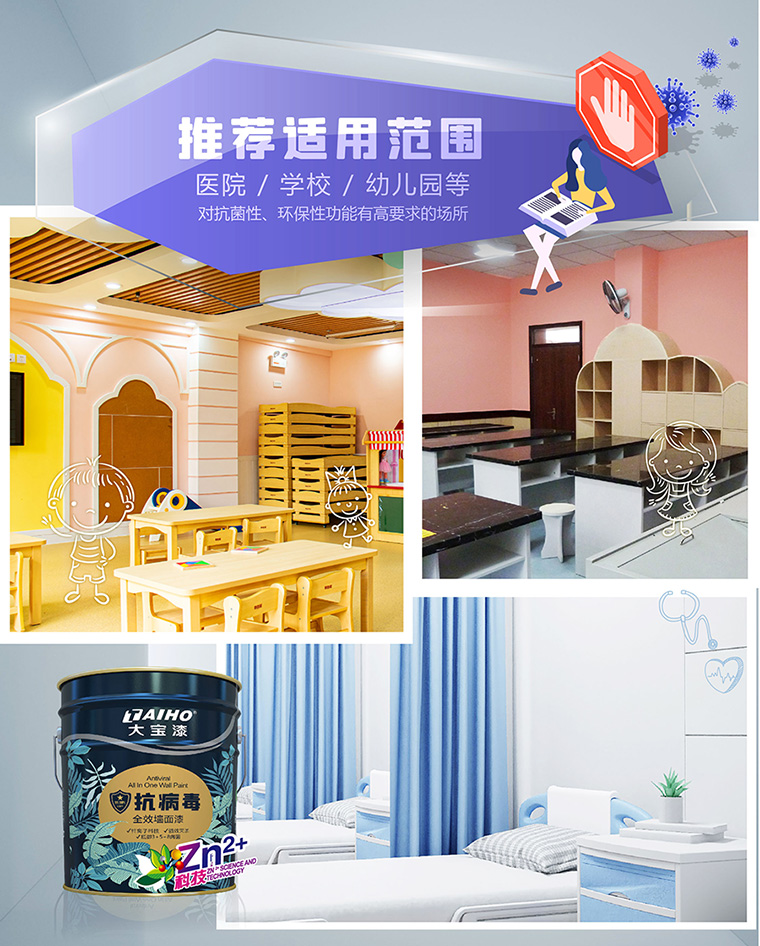 因應(yīng)日趨嚴(yán)峻的疫情,大寶抗病毒全效墻面漆的誕生猶如一場(chǎng)及時(shí)雨,給予我們實(shí)質(zhì)上的安全感,全方位締造健康安全的居室空間。